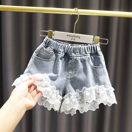 Girl Jeans Shorts Kids Denim Short Pants Baby Casual Lace Shorts Beach Bottoms Fit 4-13 Years Child Summer Clothes